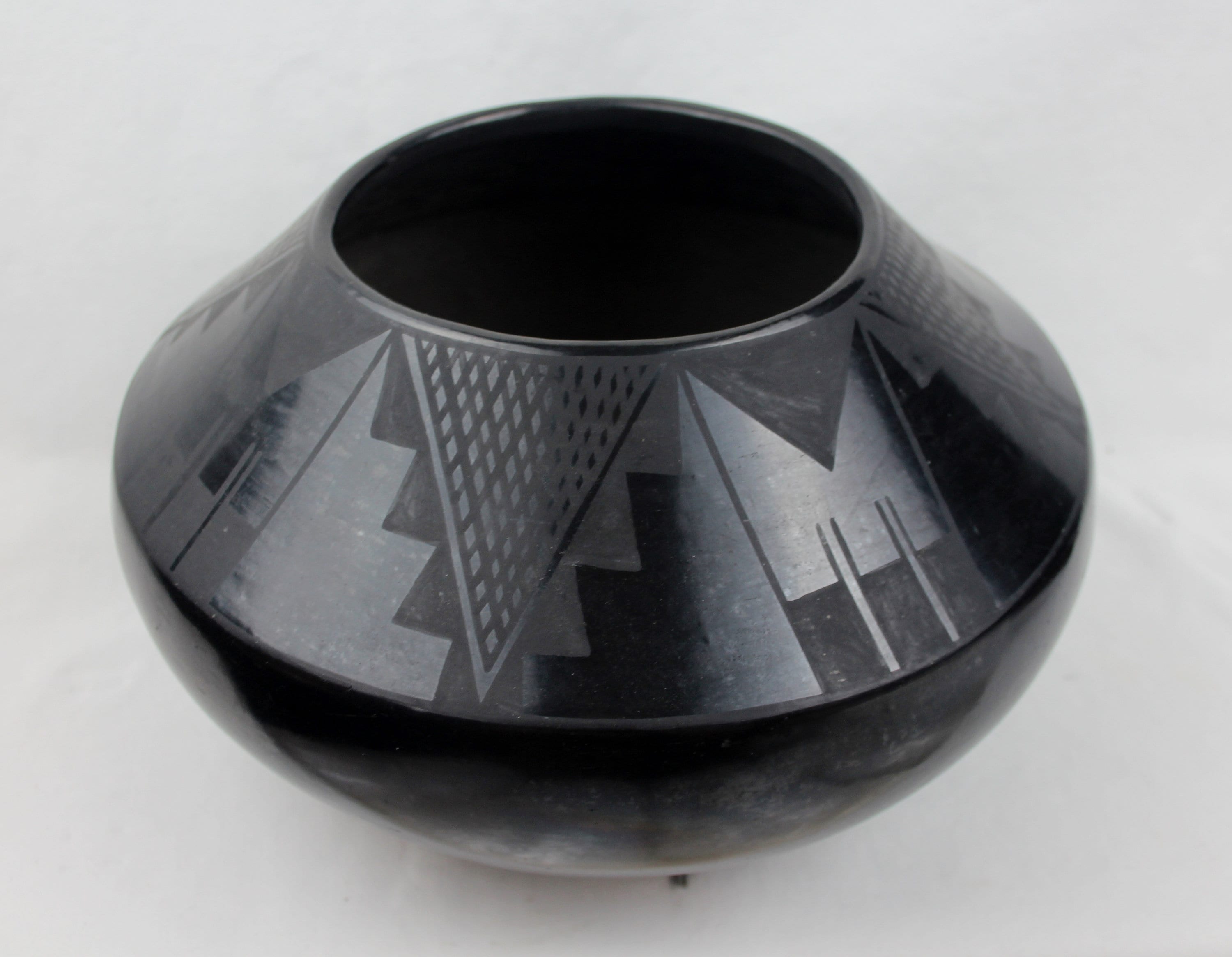 Native American Betty Tafoya Black Pottery Carved Incised Motif Bowl Ahmeek Antiques And Decorative Arts Llc Ruby Lane